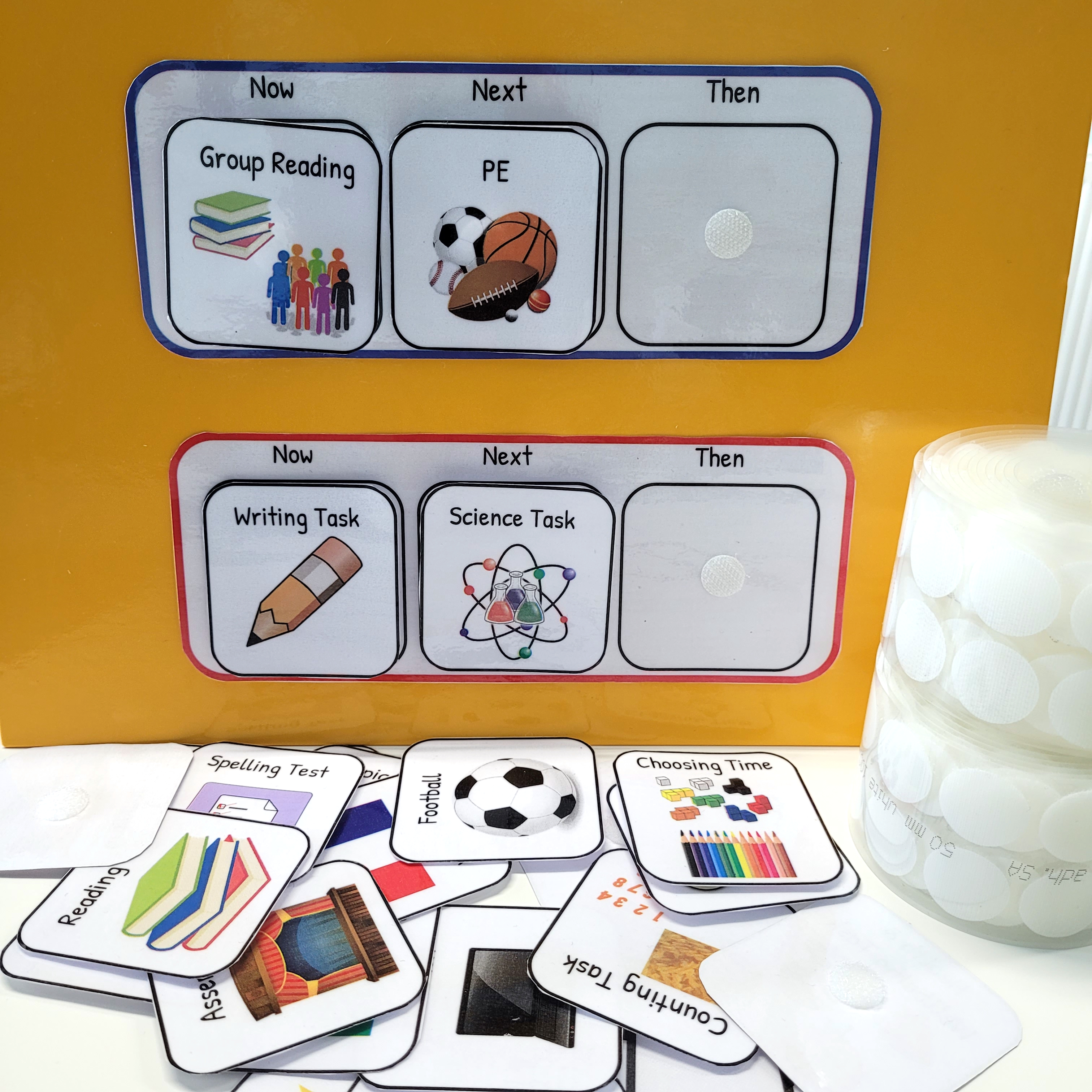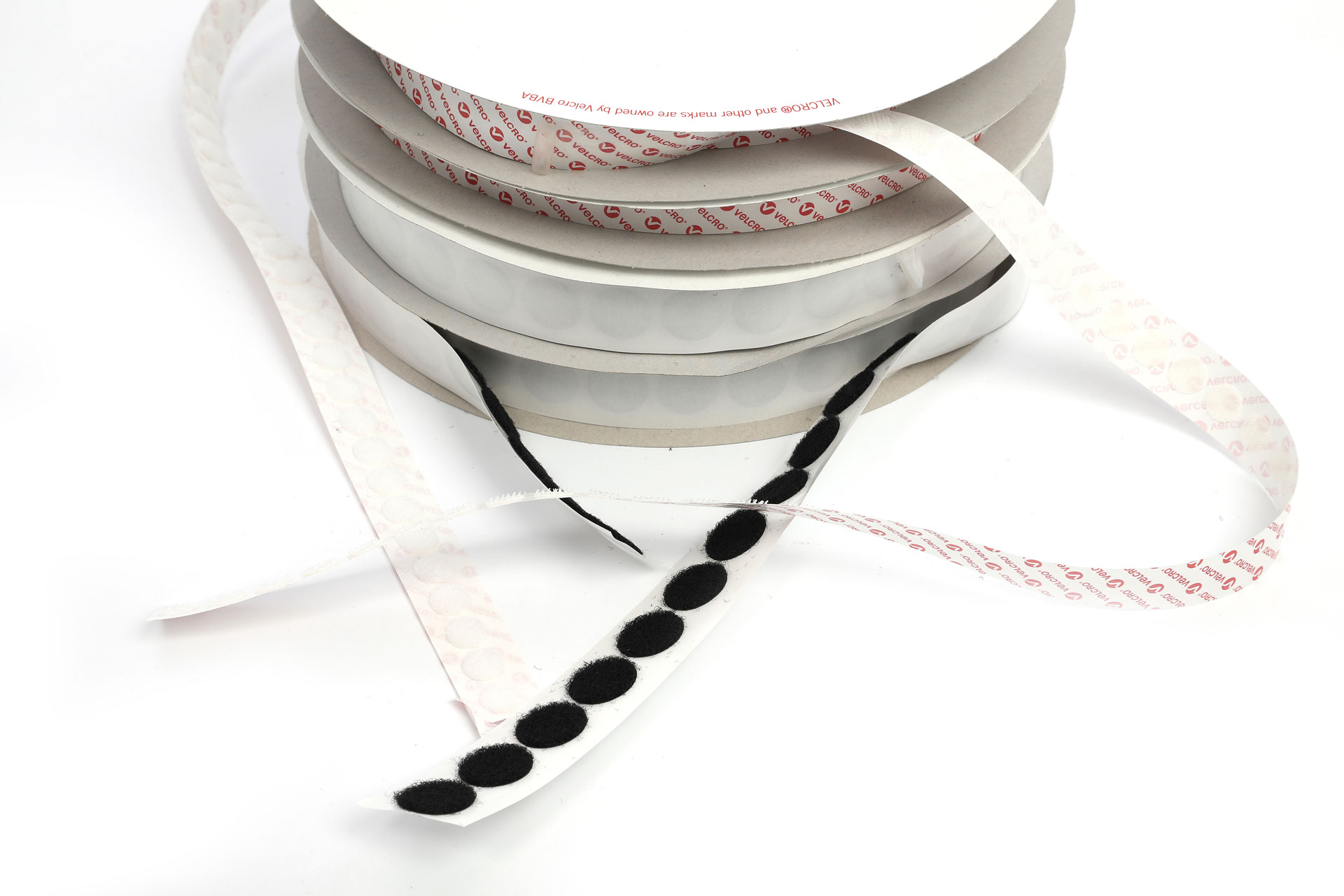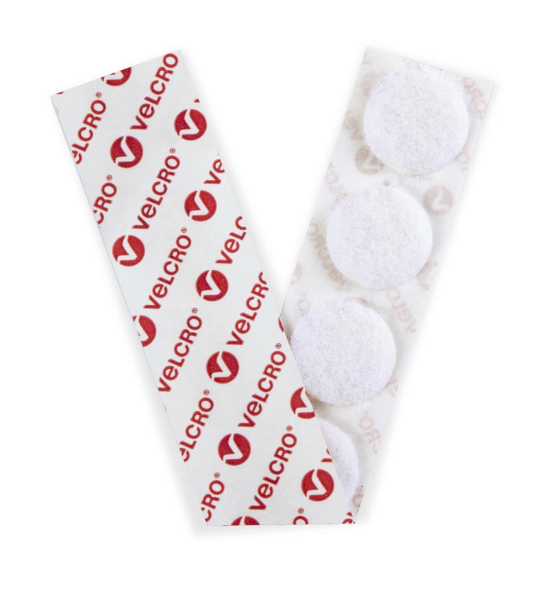 Stick On VELCRO® Brand dots with pressure sensitive adhesive. Simply peel and stick to use.